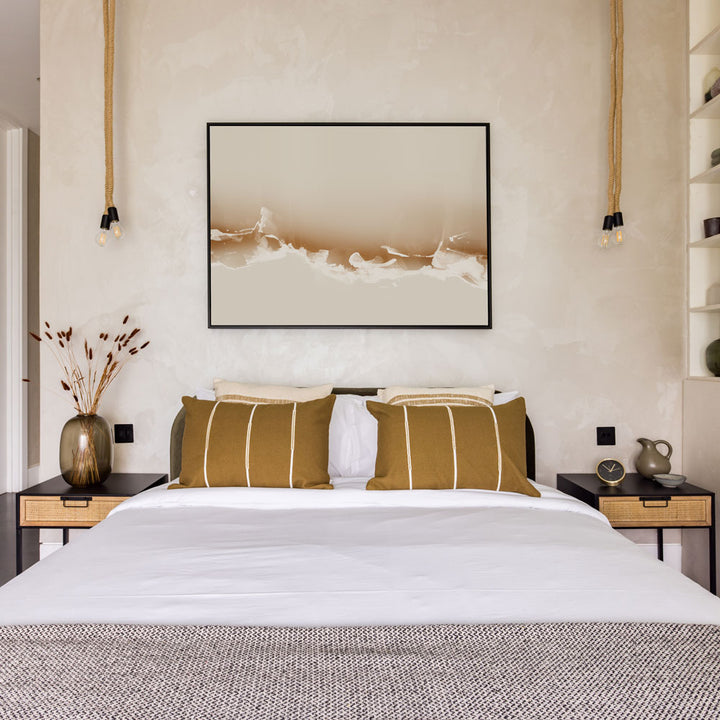 Unsere gerahmten Leinwände sind leicht und lassen sich mit nur ein paar Standardschrauben einfach aufhängen, sodass sie sicher und bündig an der Wand anliegen.