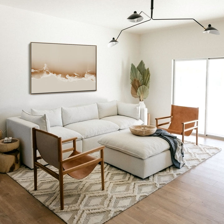 „Blissed Out“ ist eine abstrakte Meereslandschaft, die das sanfte Plätschern des Meeres an der Küste in einer modernen Ombre-Palette aus warmen Neutraltönen, würzigen Farbtönen und Terrakotta einfängt. Der Name dieses beruhigenden Leinwandbildes spiegelt die Essenz des Glücksgefühls wider, das einen um alles andere vergessen lässt – das friedliche Gefühl, das man beim Blick aufs Meer verspürt. Es ist die perfekte beruhigende Kulisse für Ihren Wohnraum.