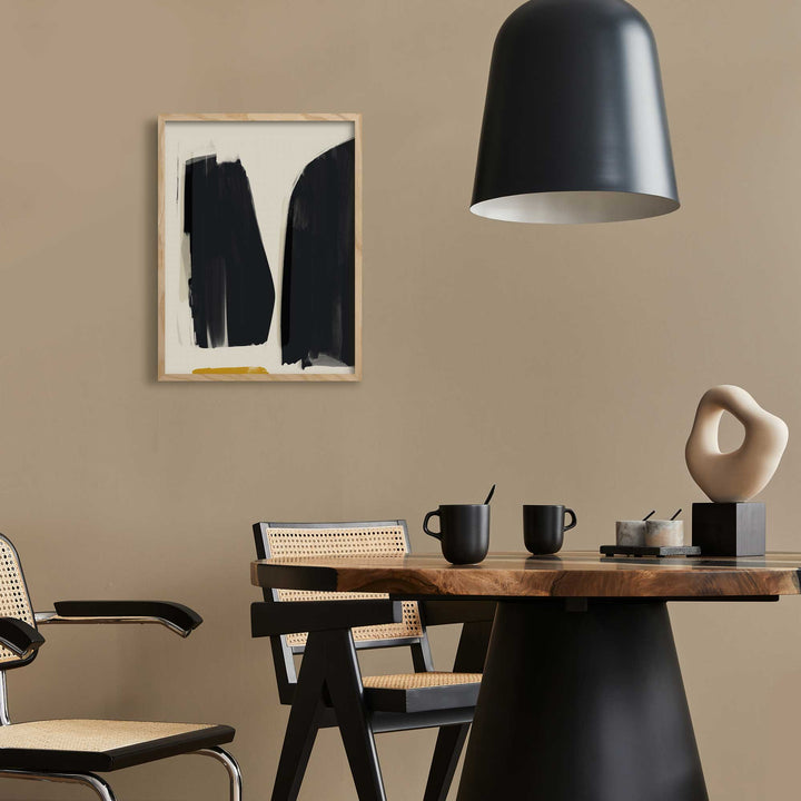Our Balance abstract canvas is inspired by organic shapes in nature, painted in bold black with touches of mustard yellow. A small piece that serves as a simple reminder to bring balance into your life and your home.
