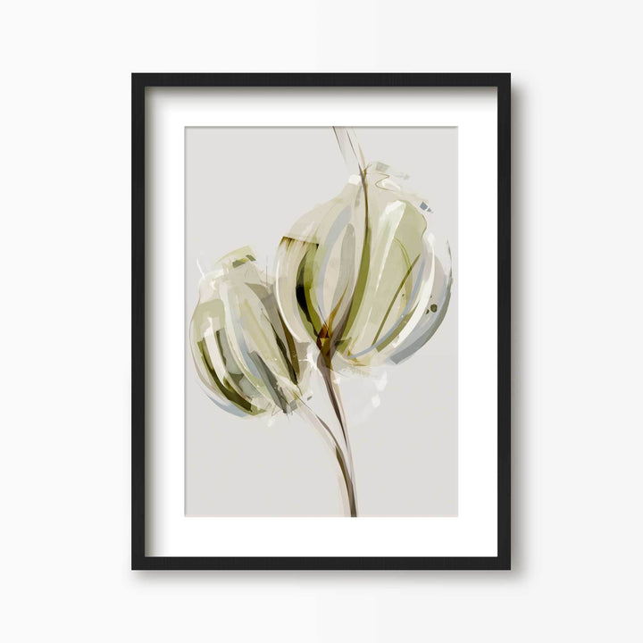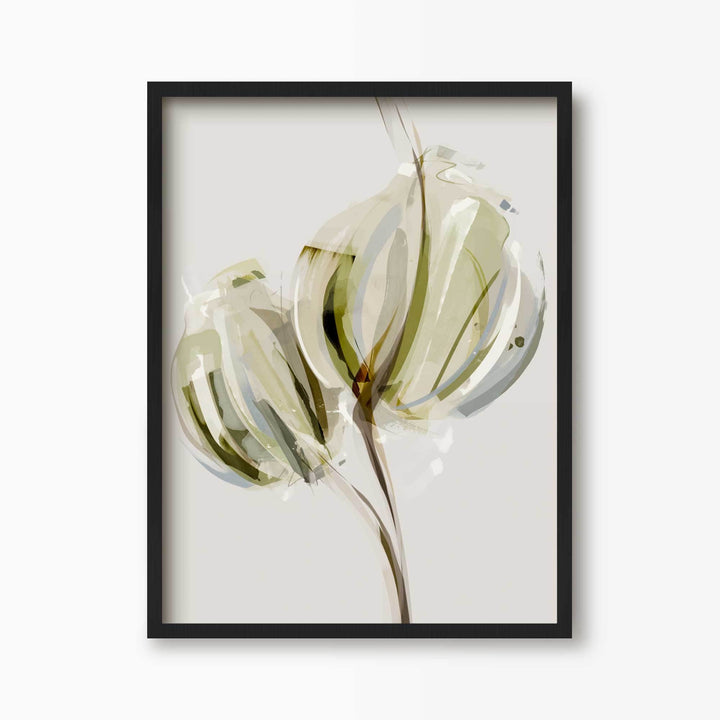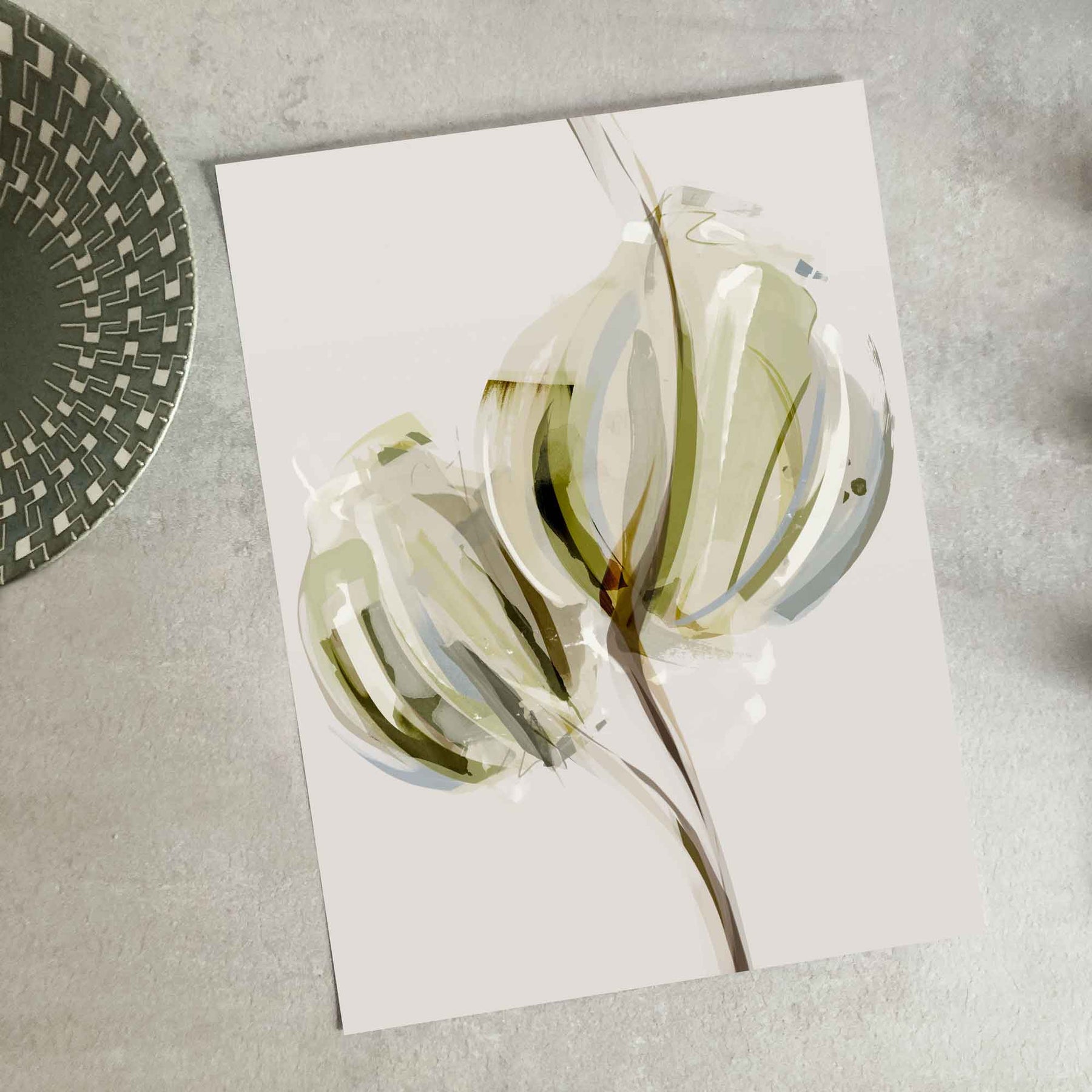 Our Best Buds abstract floral canvas is bloomin’ lovely for light, minimalist interiors. With loosely painted green buds and subtle hints of blue against a warm neutral background, this small framed floral wall art works beautifully in a bathroom, home office, or styled corner.