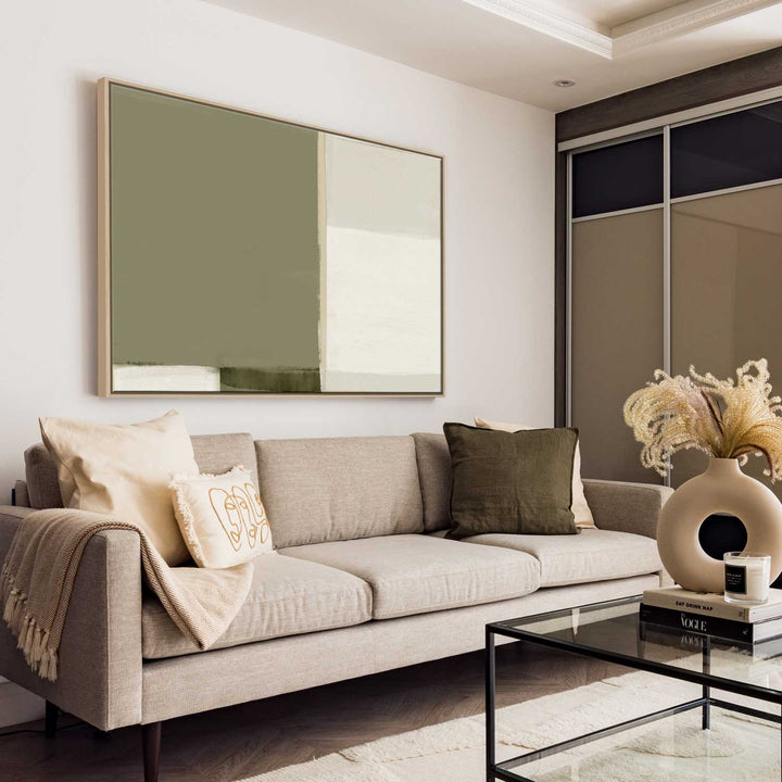 Our Down To Earth framed abstract canvas art presents a deconstructed abstract landscape in an earthy-toned colour palette. Get creative with this nature-inspired, green abstract wall art and hang it any way you like.