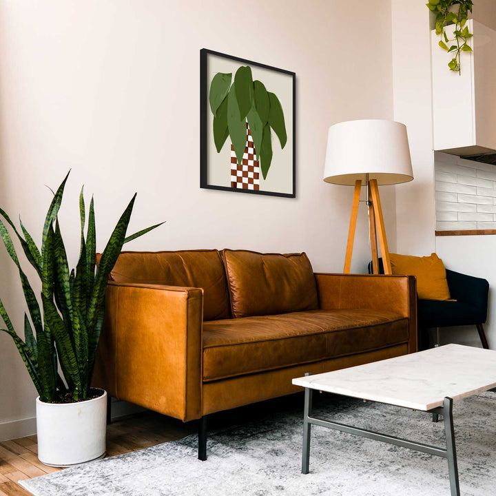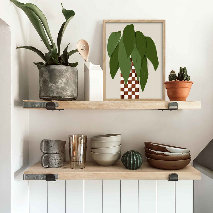 Our In The Limelight botanical canvas brings warmth and colour to modern interiors. With deep green leaves in a terracotta chequered pot, this small framed botanical wall art works beautifully in home offices, kitchens, or styled corners that need a fresh lift.
