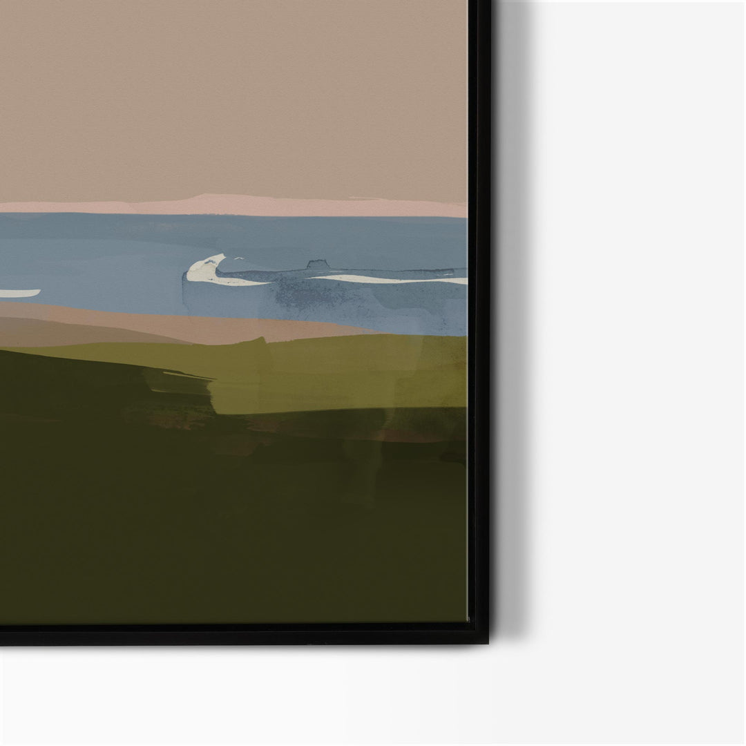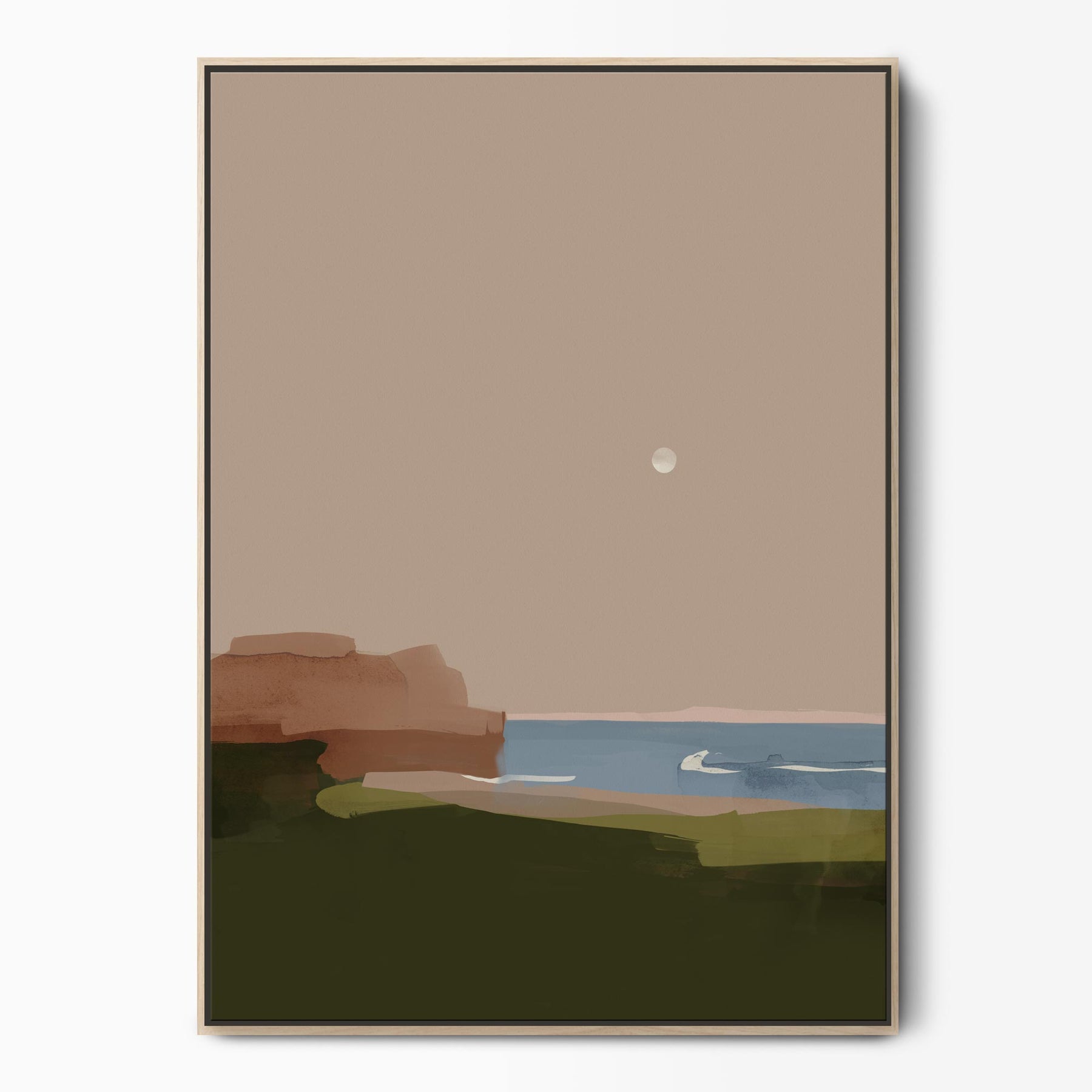 Moonlight Musings brings a peaceful view of the sea at dusk in a warm, earthy palette that captures the soft glow of evening. This calming abstract seascape invites you to reflect and unwind, creating a quiet moment of pause, perfect for a modern living room or bedroom.