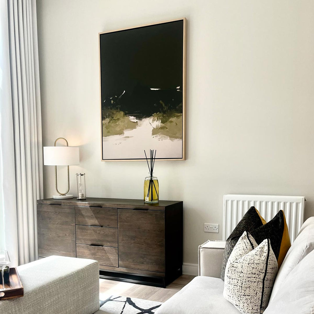 If you’re still deciding on the sizes, using masking tape can be a great way to visualise how it might look in your space. Mark out the Framed Size of each option, leave it up for a day or two, and even take a couple of photos on your phone. Keep checking back. You’ll soon get a feel for which one’s right.
