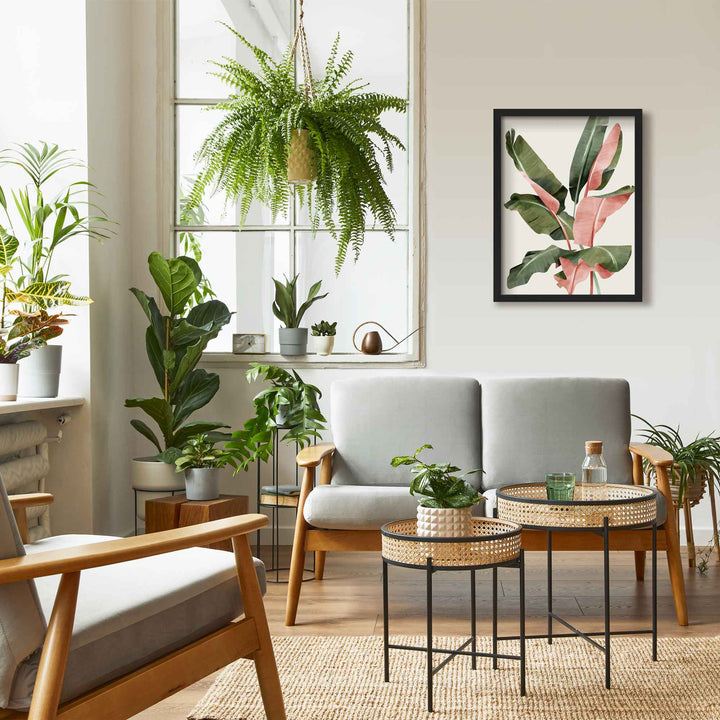 Our abstract Banana Leaf framed botanical canvas art is big, bright, and colourful, and the perfect way to bring some tropical vibes to your home.