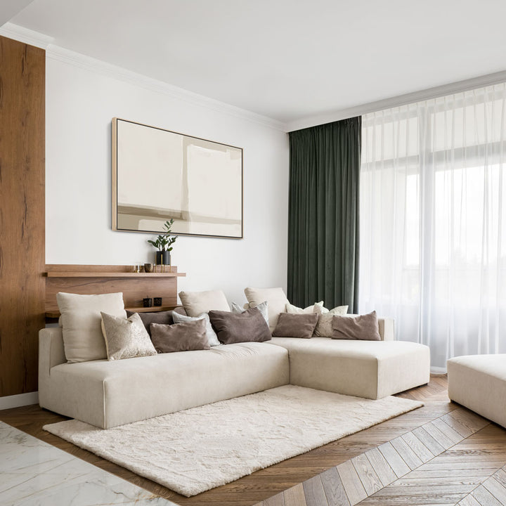 Quiet Ground brings warmth and balance with its organic forms and soft, off-white accents. Inspired by natural landscapes, its minimalist design creates a sense of calm and depth without overwhelming a space. Perfect for homes that embrace a soft, neutral palette and a refined, minimalist aesthetic.