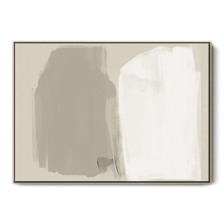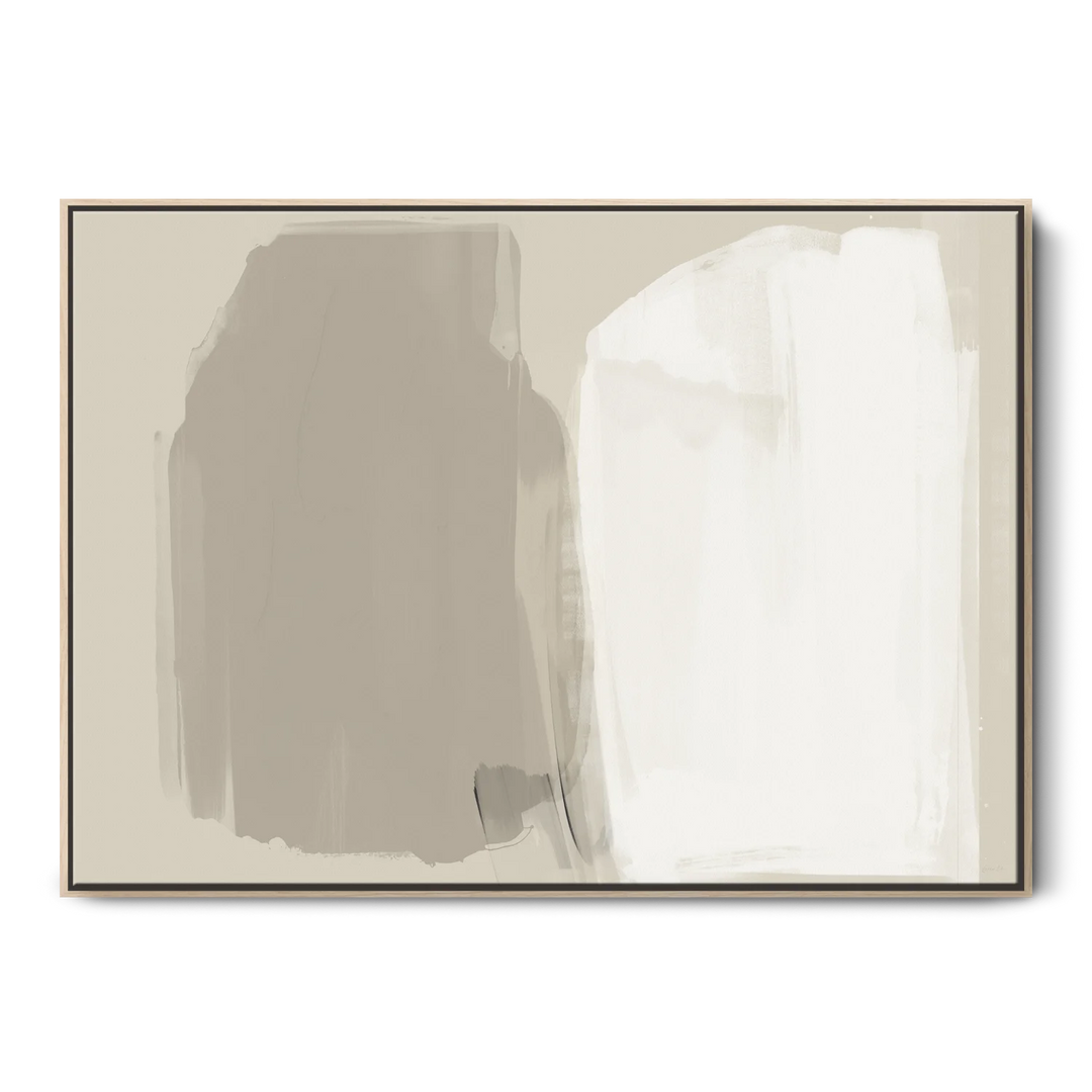 Our Stand Still framed abstract canvas wall art presents large shapes painted in soft neutral tones. This timeless abstract artwork is inspired by the wonders of nature and stone shapes formed over many years. In this increasingly fast-paced world, take a moment to be present and stand still.