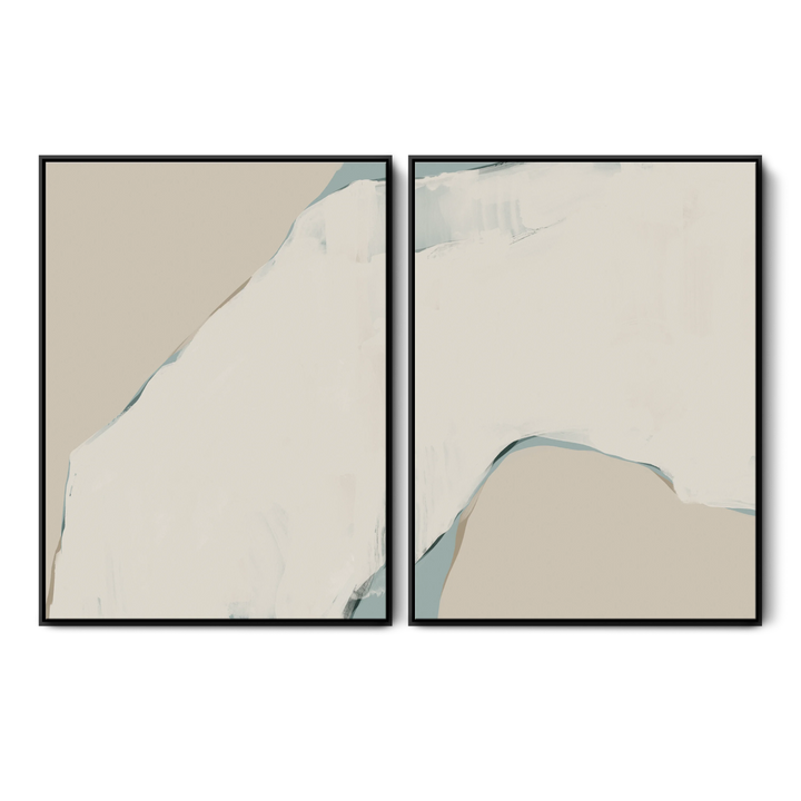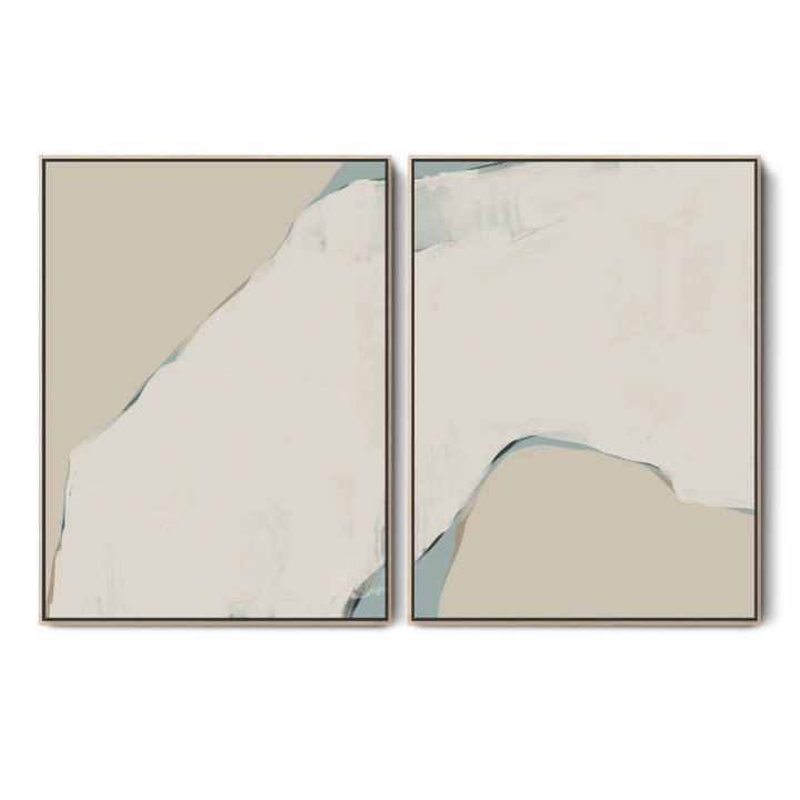First Up is a minimal abstract canvas set that combines Fresh Start and Free as Air into a seamless, continuous landscape. Inspired by the thrill of being the first on fresh snow, its cool neutrals and icy tones of white and mid-blue reflect the open air and sweeping curves of a ski slope. Designed to be displayed as a pair or joined as one statement piece, it adds a sense of flow and balance to your space.