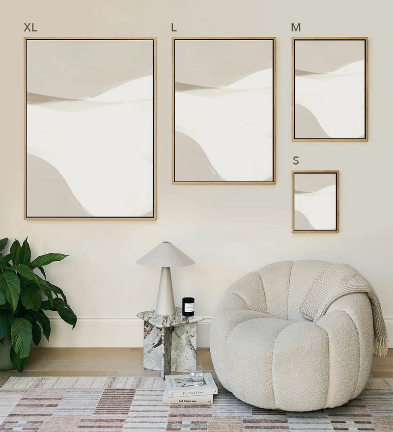 Large and Extra Large: Our signature sizes. Make a quiet statement above your sofa, bed or fireplace, or in open-plan spaces. Sometimes one piece is all you need. Simple, intentional, and made for slow living.