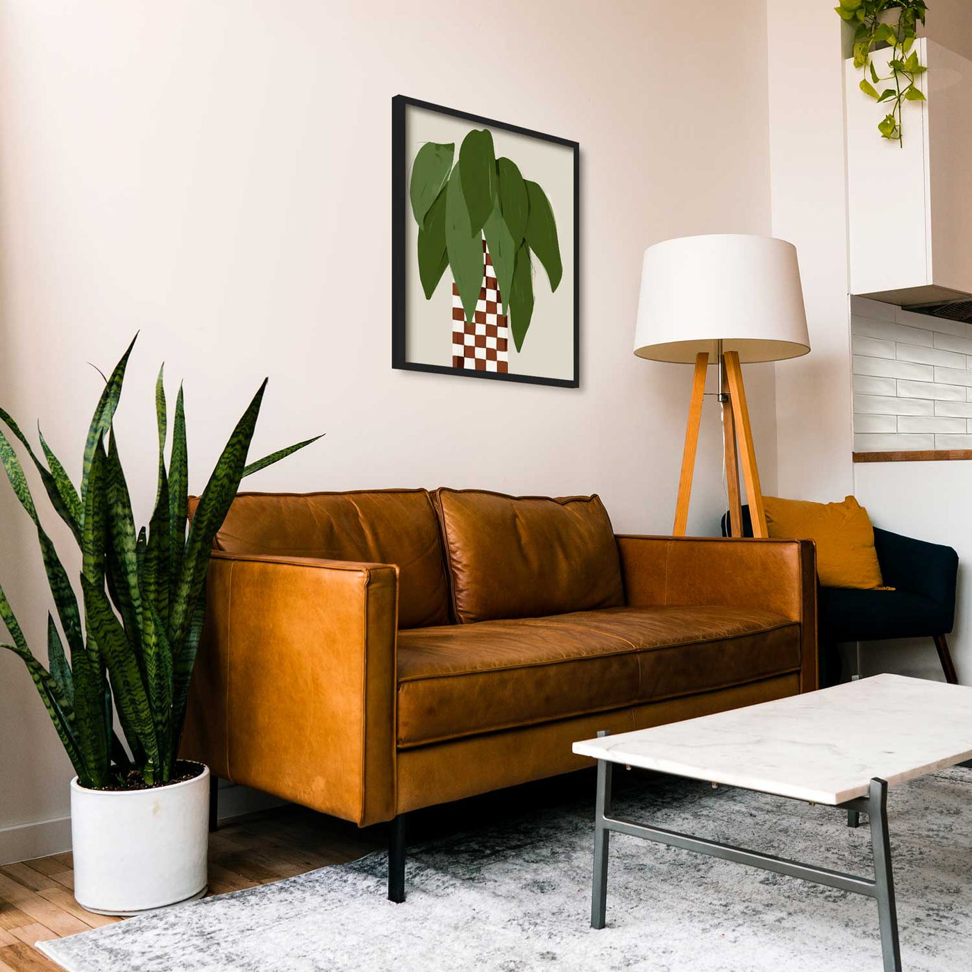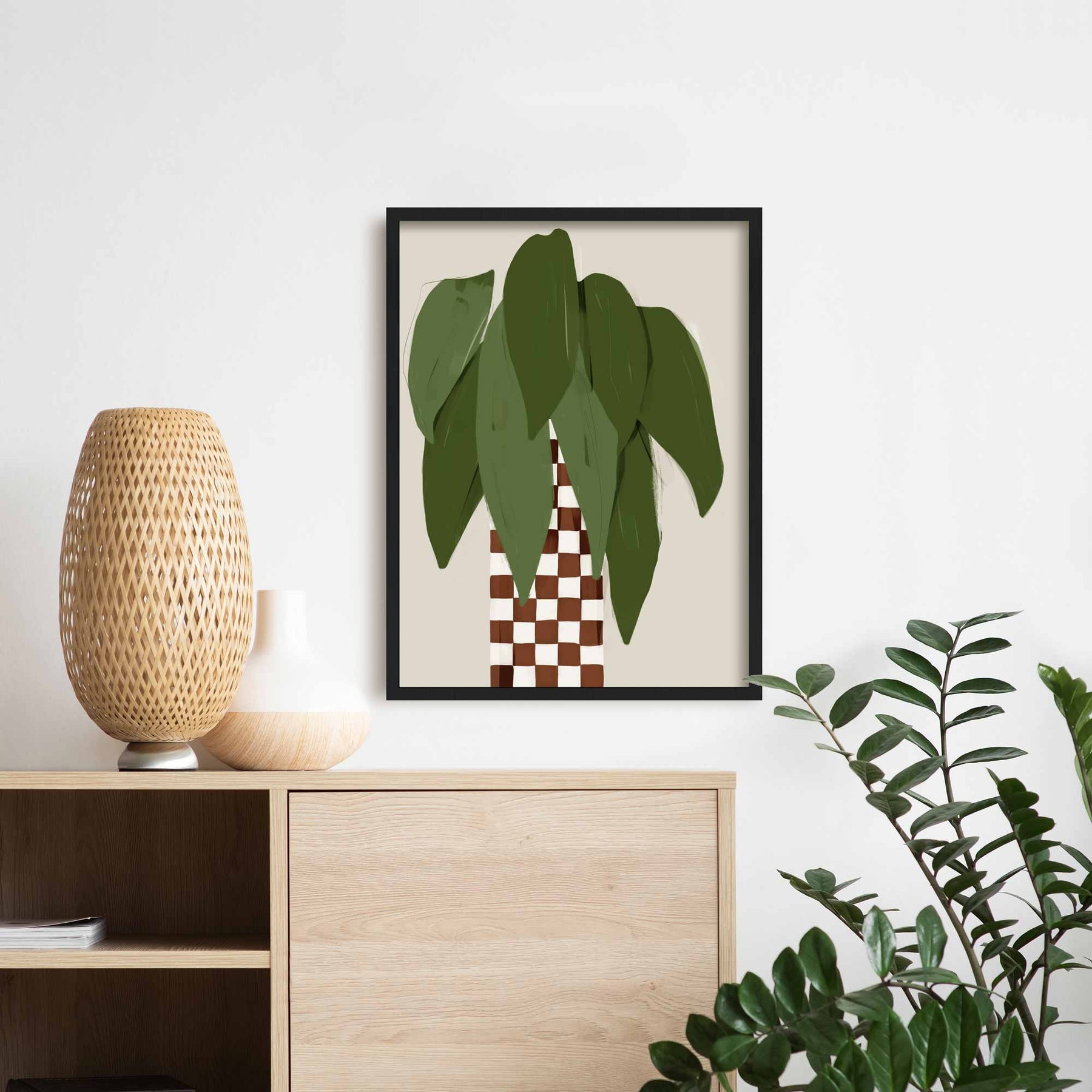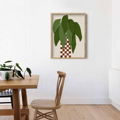 Our In The Limelight botanical canvas brings warmth and colour to modern interiors. With deep green leaves in a terracotta chequered pot, this small framed botanical wall art works beautifully in home offices, kitchens, or styled corners that need a fresh lift.