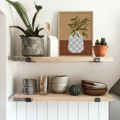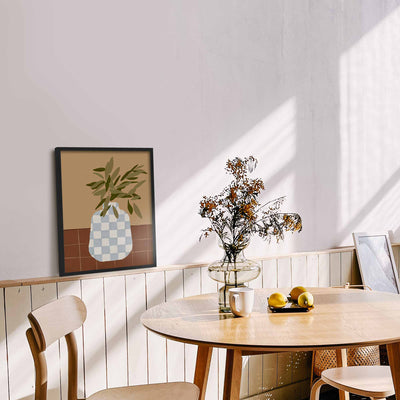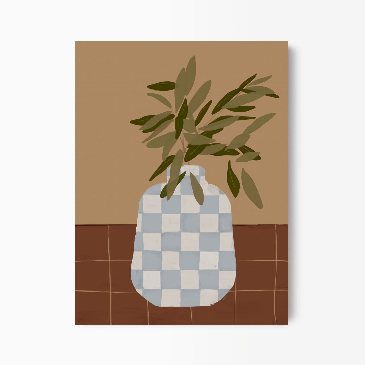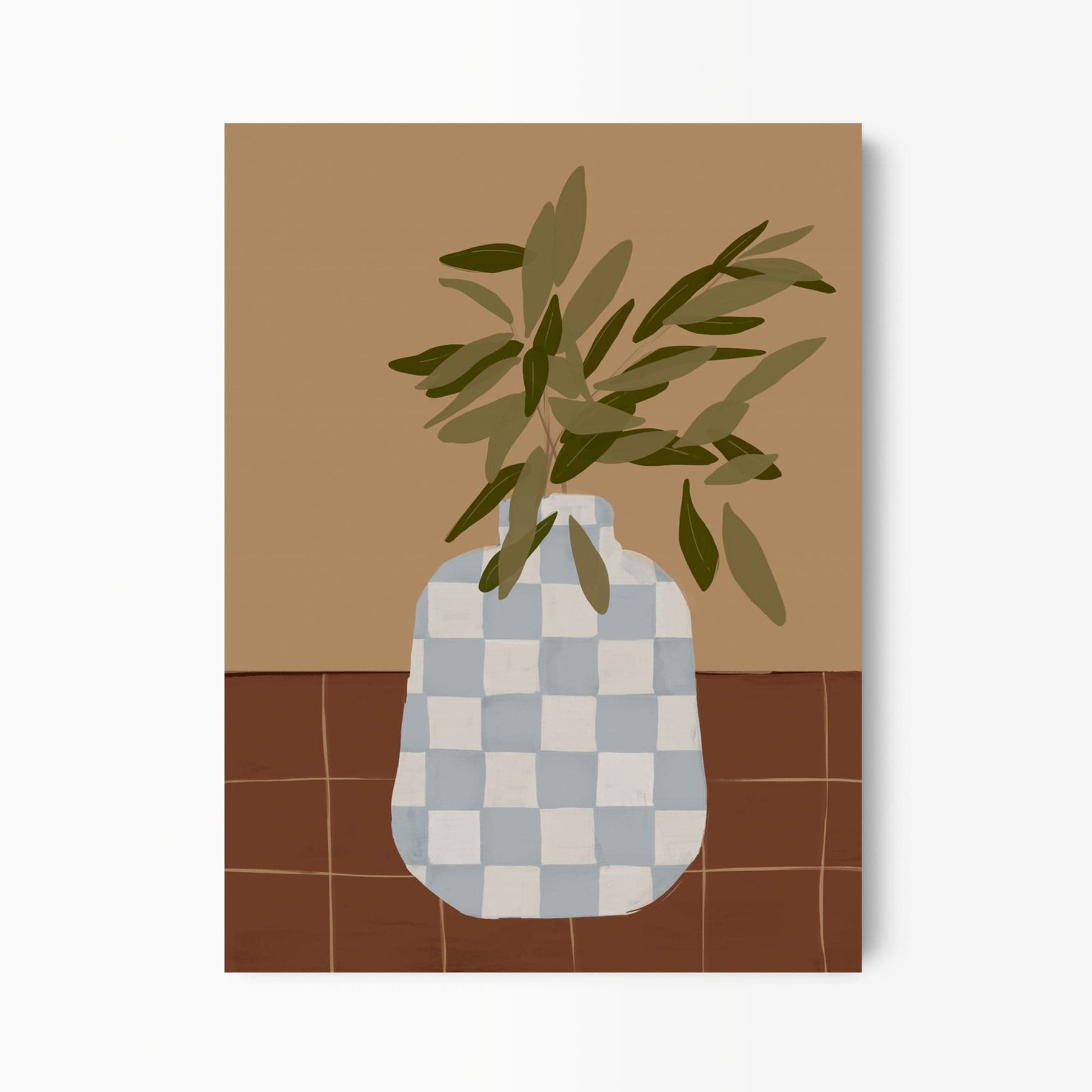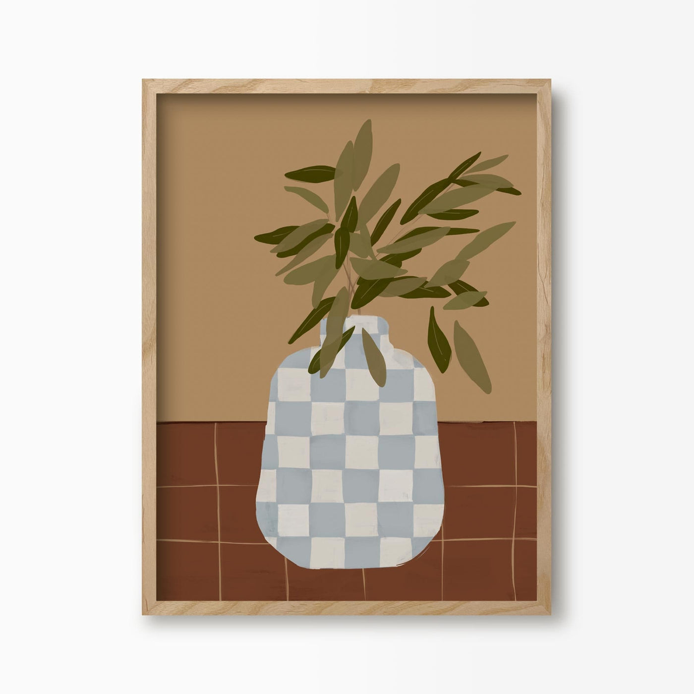 Liven up your space with our Olive Branch framed botanical canvas art. With warm green leaves, a blue and white checkerboard vase and terracotta tiles, this playful print is a fun way to add a pop of nature's colour to your kitchen, dining room or gallery wall. As seen in Real Homes magazine.