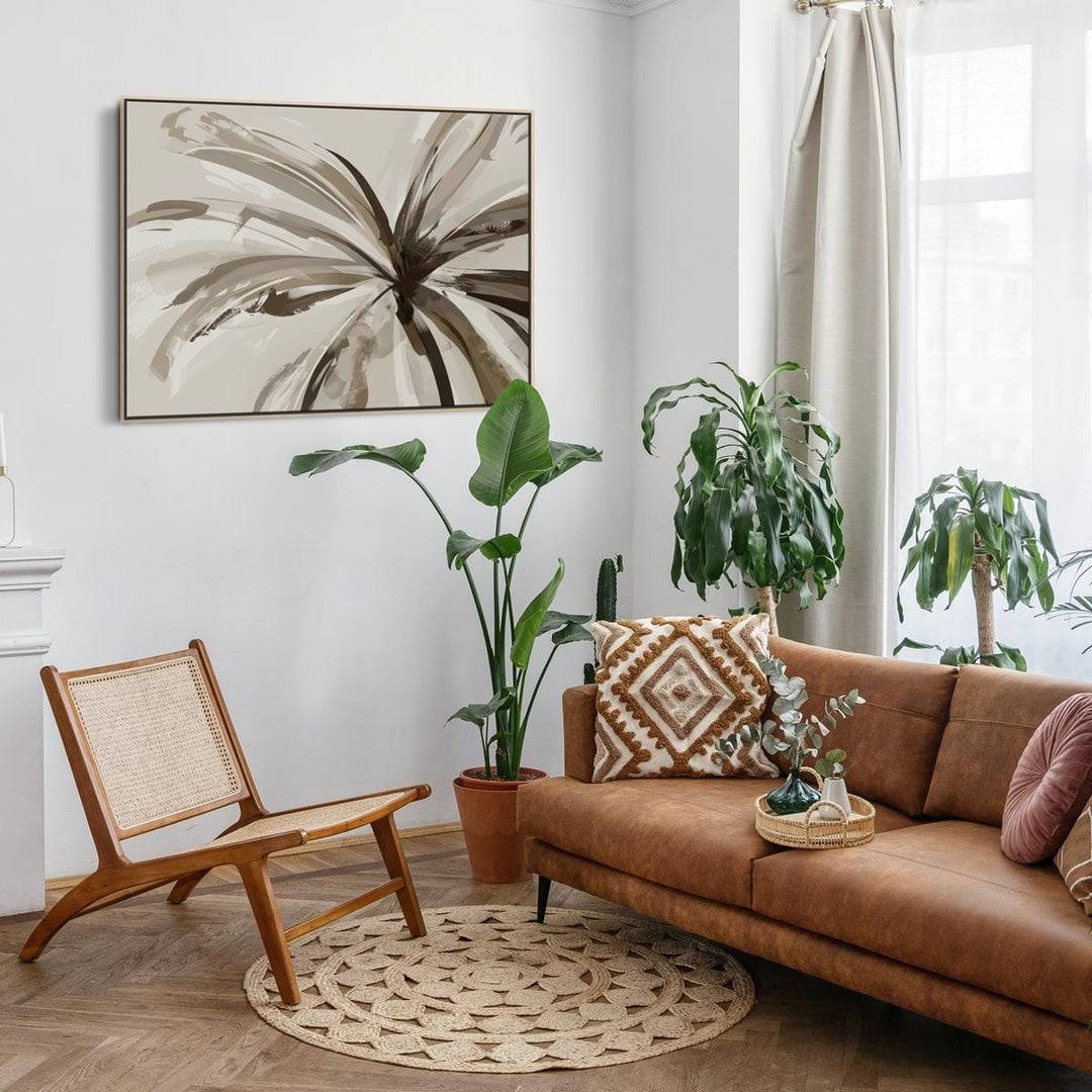 Escape for a moment of serenity with our Sandy Palms botanical canvas wall art. This loosely painted palm tree art soothes the soul with its neutral colour palette of soft earthy browns, drawing you into a world of relaxation and tropical bliss.