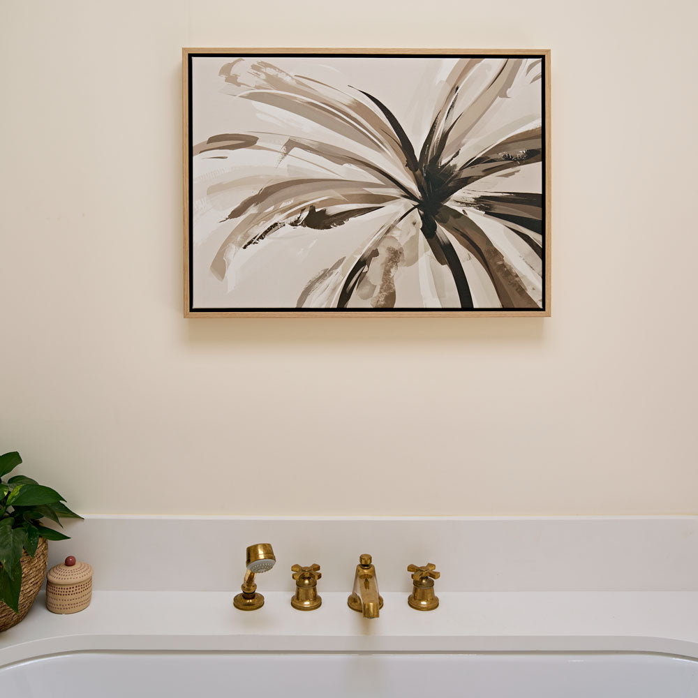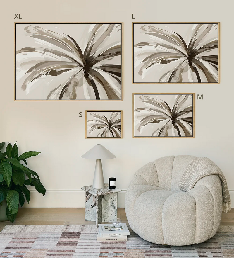 Escape for a moment of serenity with our Sandy Palms botanical canvas wall art. This loosely painted palm tree art soothes the soul with its neutral colour palette of soft earthy browns, drawing you into a world of relaxation and tropical bliss.
