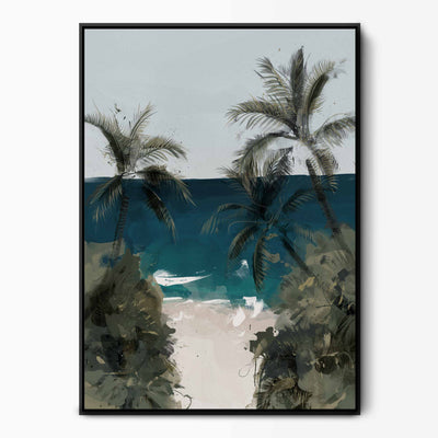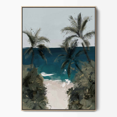 Our Sea You There large framed beach canvas will have you channelling those summer vibes all year long. The peaceful nature of this dreamy beach wall art, with white sands, soft ocean blues, and tropical palm trees, makes it easy to create your very own hideaway. It's calming, comforting, and paradise all rolled into one.