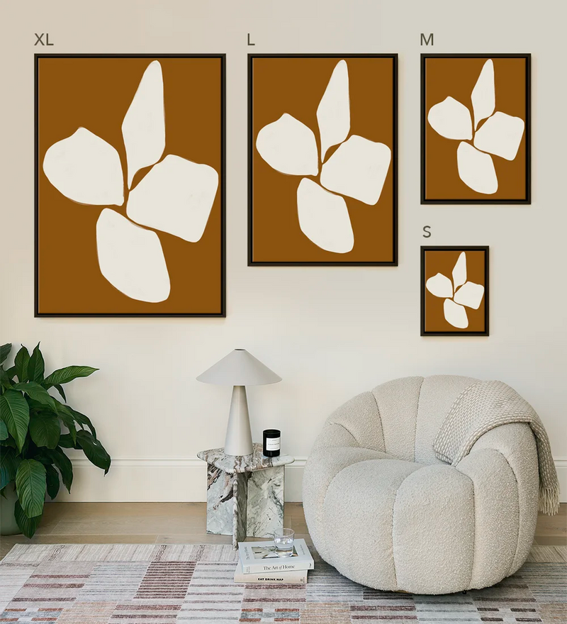 Bring warmth to your home with the earthy tones of our Burnt Orange Anemone Abstract Flower wall art. This modern deconstructed floral canvas is a simple way to add a splash of nature's hues to your space. The small size is great for hallways, bathrooms, and kitchens, and the large size is great for minimal bedrooms and cosy living rooms. Mix and match this floral canvas wall art with other florals from the series in Neutral, Neutral & Black and Green.