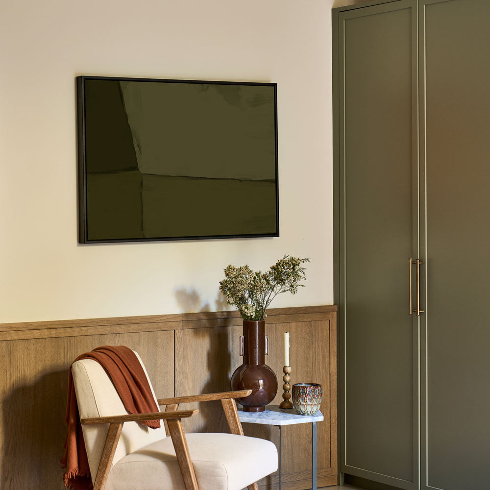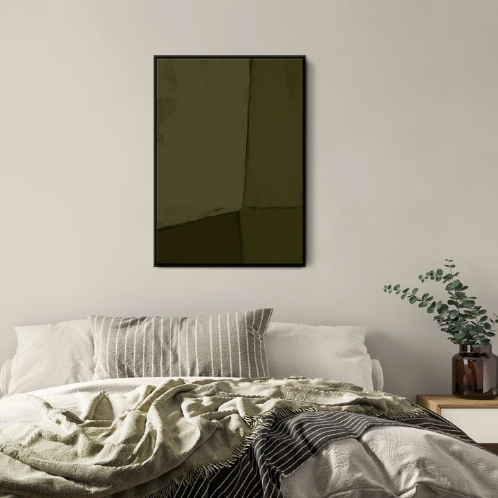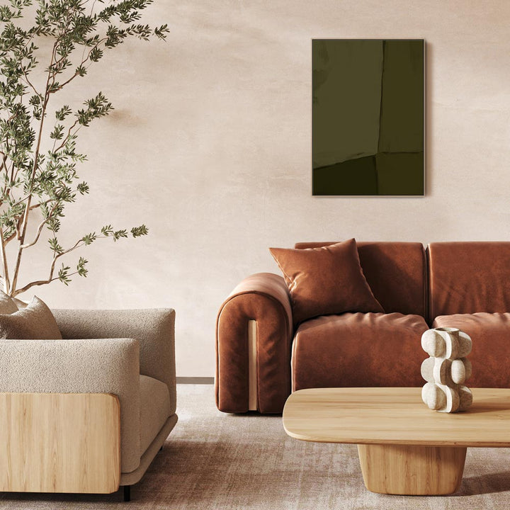 Earthy, warm, and easy to live with. Level Out is a deep green tonal abstract landscape canvas with brown undertones, designed to feel natural and effortless. With soft edges and an organic feel, it's perfectly imperfect—adding quiet depth and a grounded feel to modern interiors.