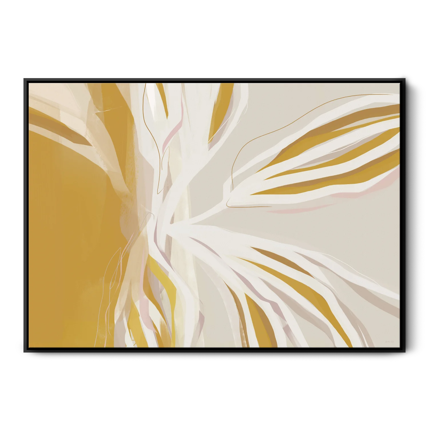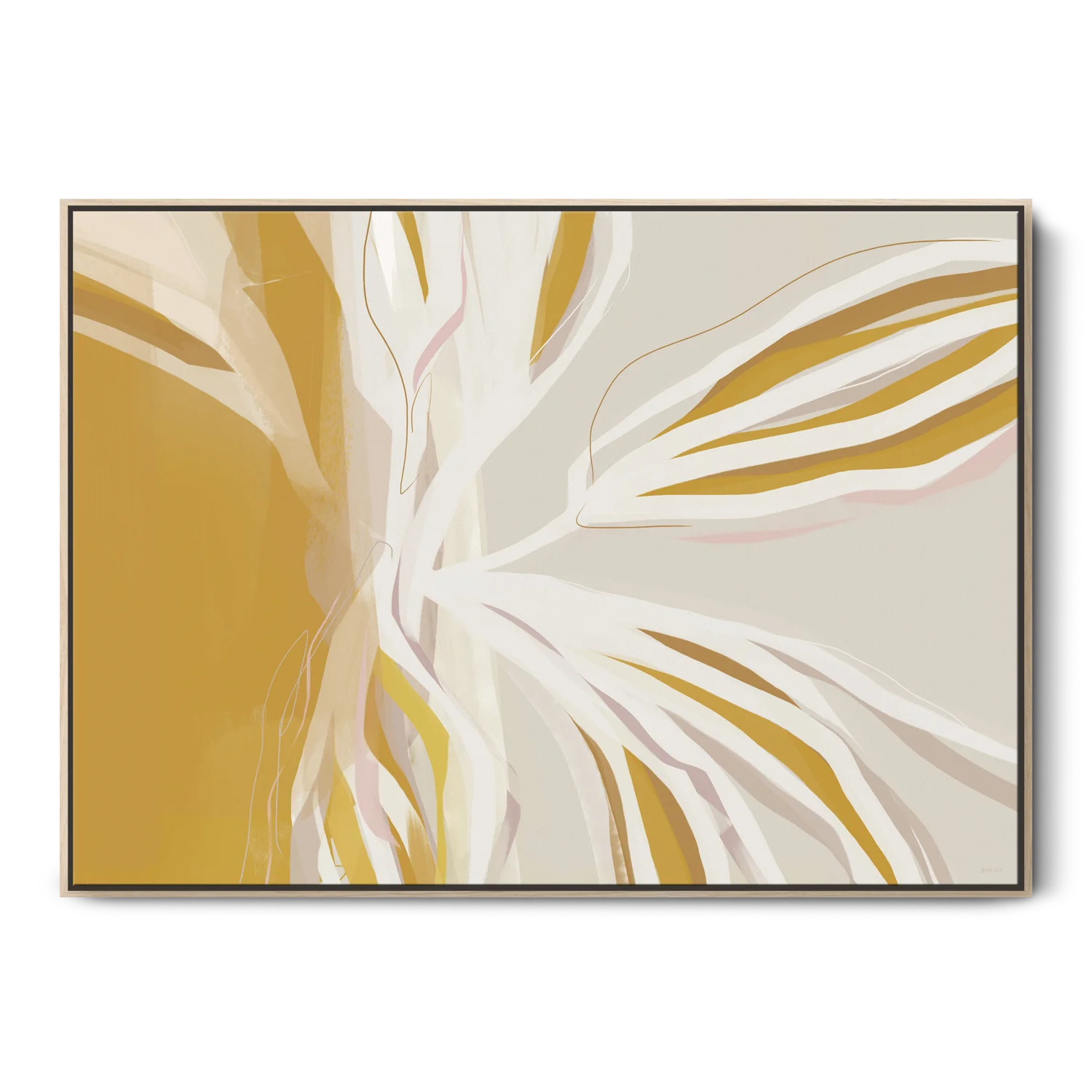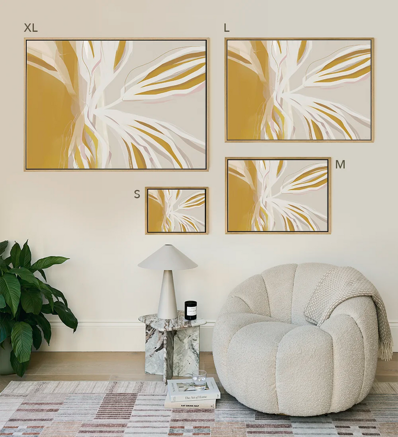 Brighten up your home with our Mornin’ Sunshine oversized mustard yellow and neutral abstract botanical canvas featuring big, bold leafy shapes with added shades of ochre and pink. It's guaranteed to invite light into your space.