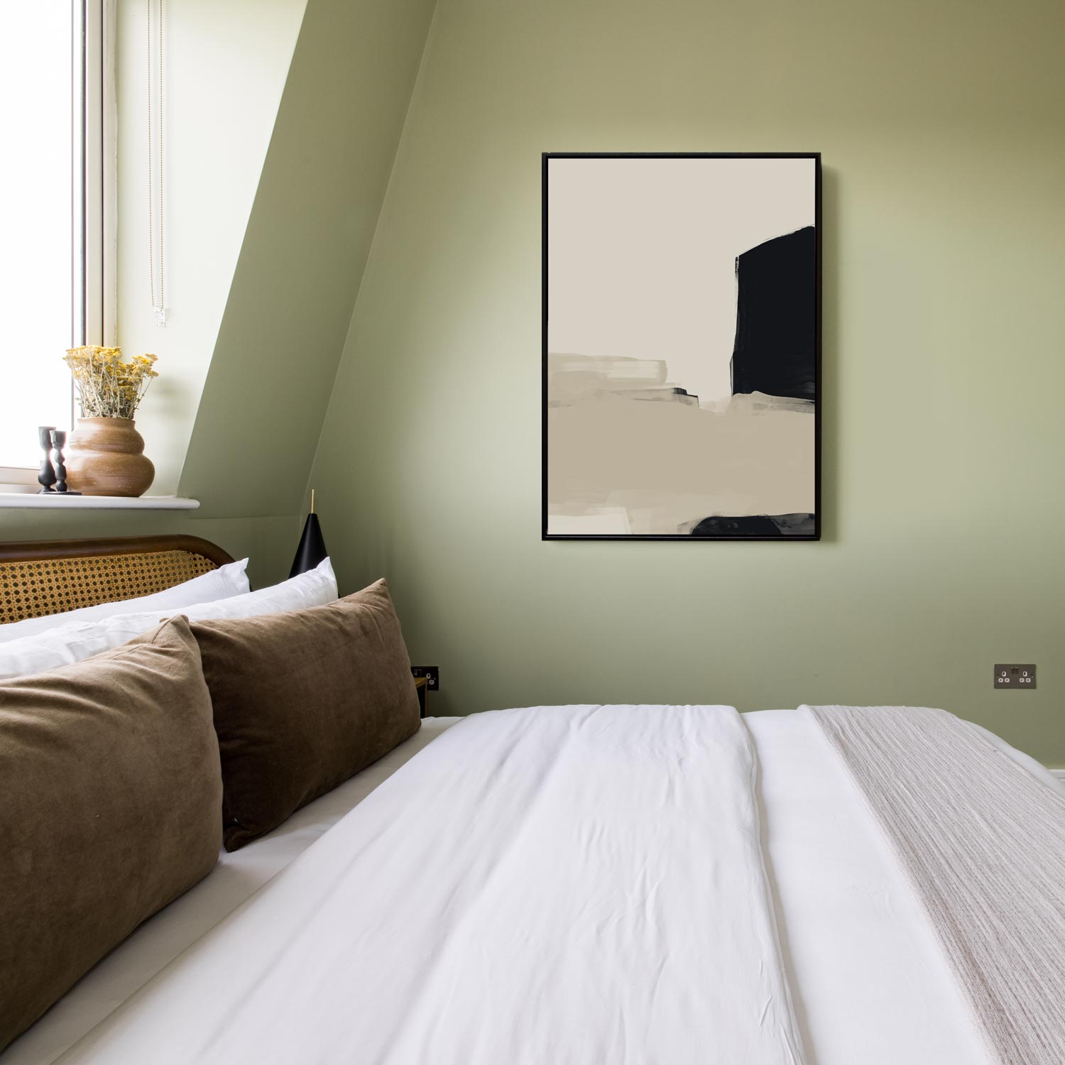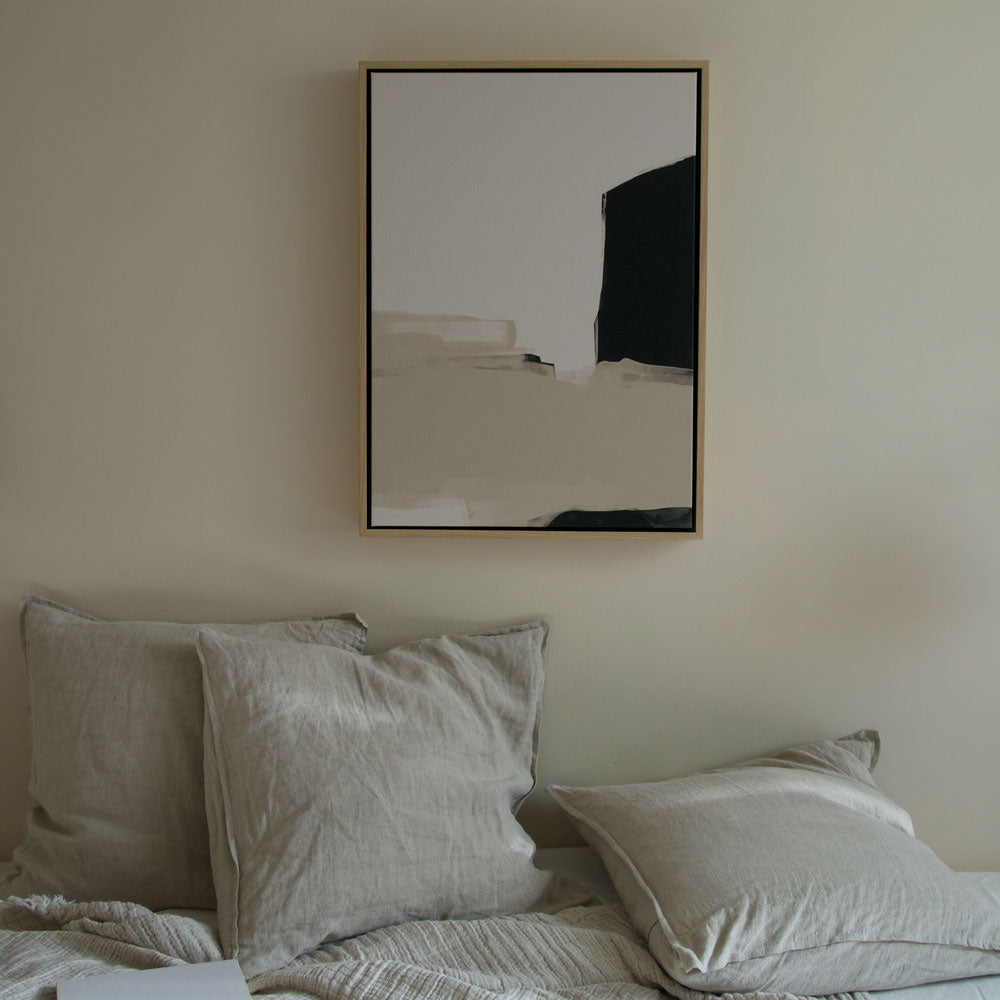 Nature Flows is a minimal abstract landscape of rocks and water in soft black and neutral tones, capturing nature's gentle, ongoing movement. This striking yet calming artwork invites pause and connection to the natural flow around us. Whether standing alone as a statement piece or paired with Where Time Slows, it's perfect for minimal-style living rooms and calming bedrooms, adding effortless style to your space.