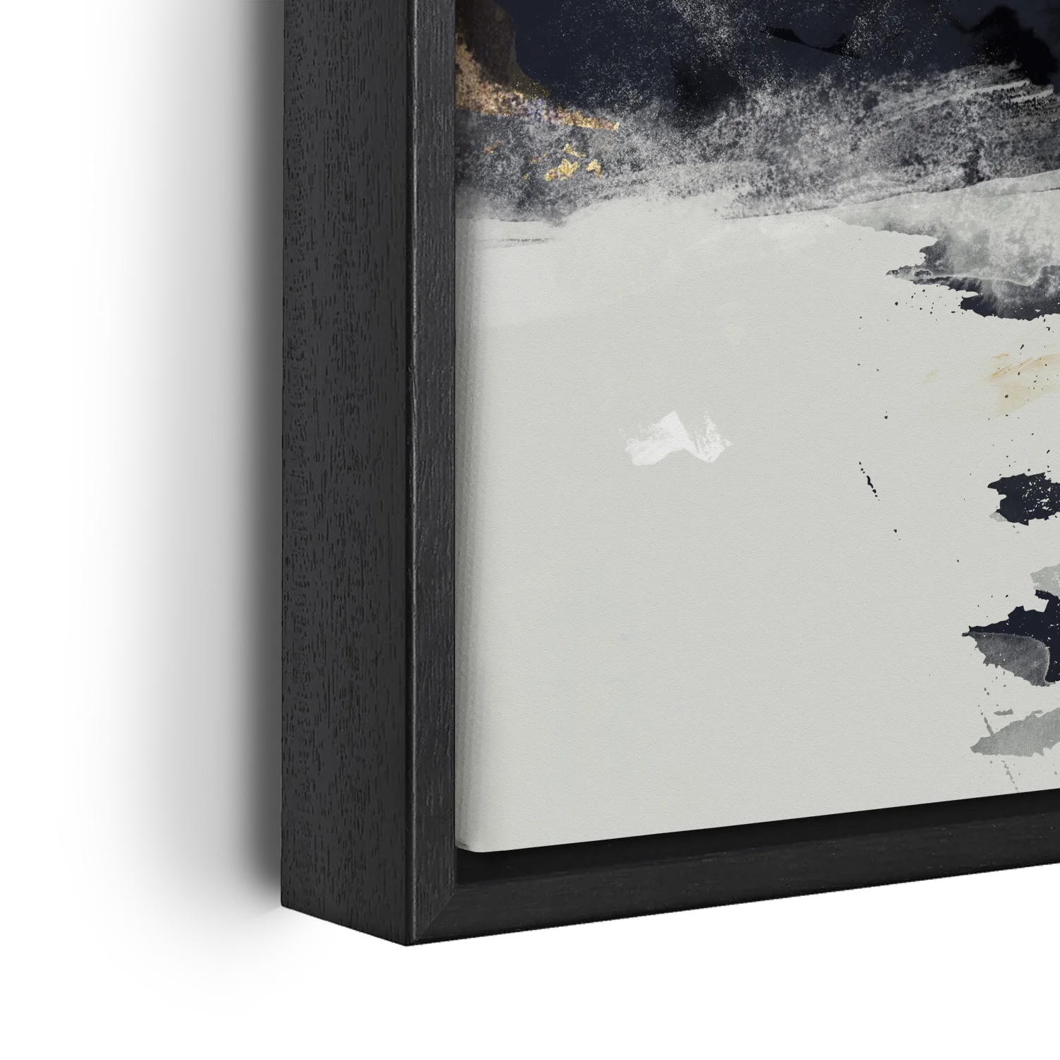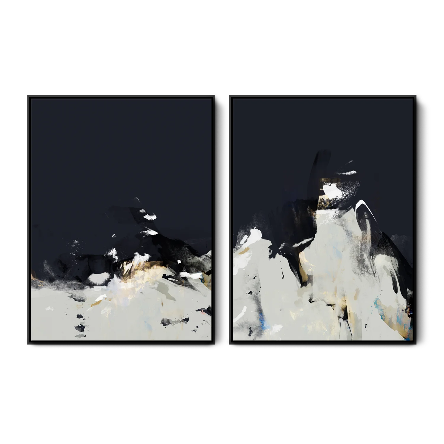 Make a breathtaking statement in your living or dining room with this modern abstract landscape set, combining our popular Top of the World and Keep Climbing mountain canvases. These framed canvases feature deep, almost-black blues and warm greys, with white accents that evoke snowy mountaintops. Sit them side by side to craft an extended, seamless landscape that quickly becomes the focal point in your favourite space.