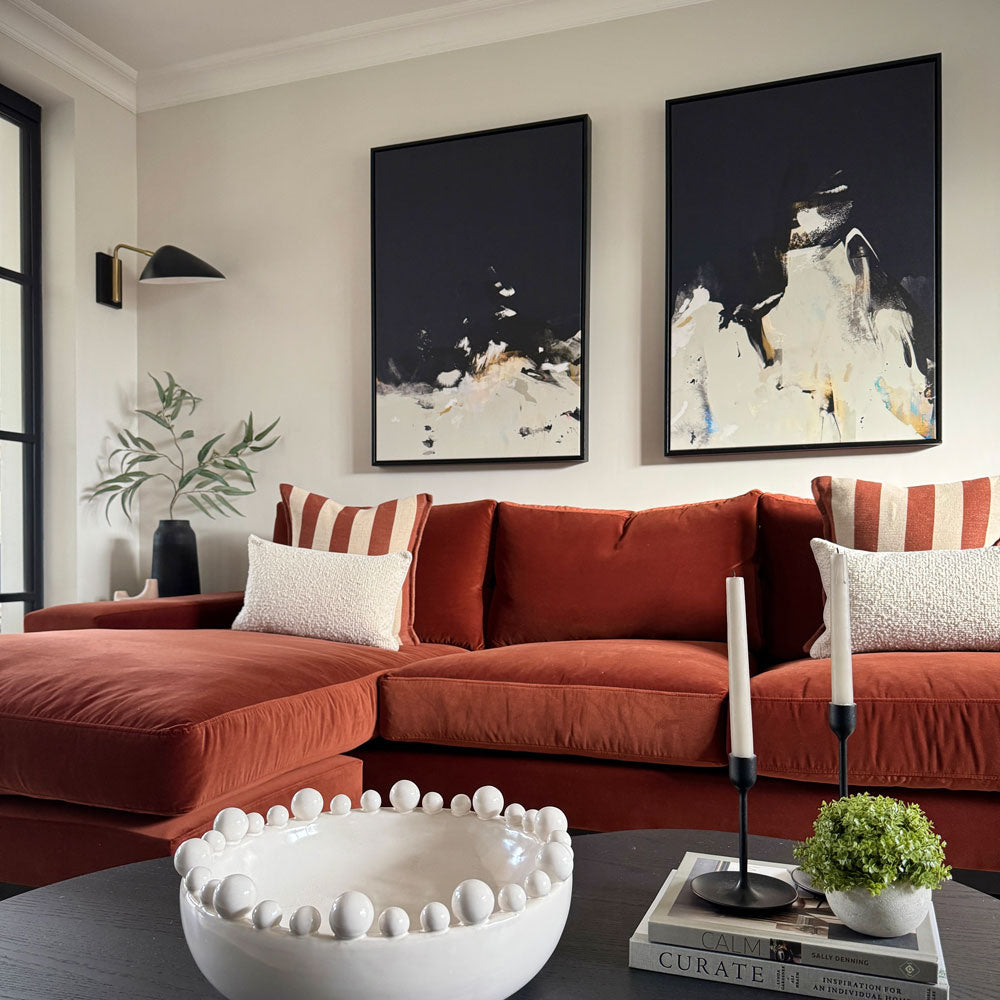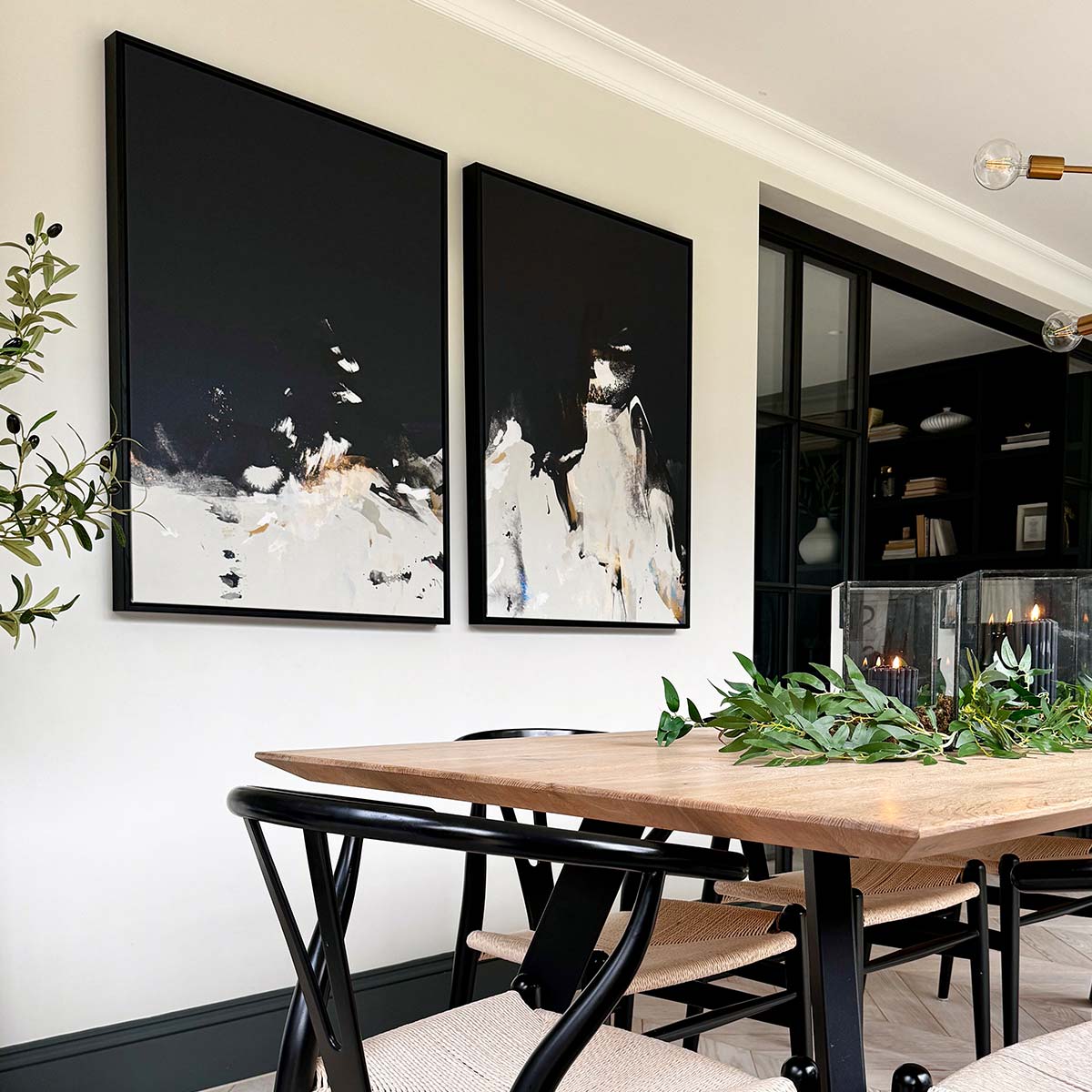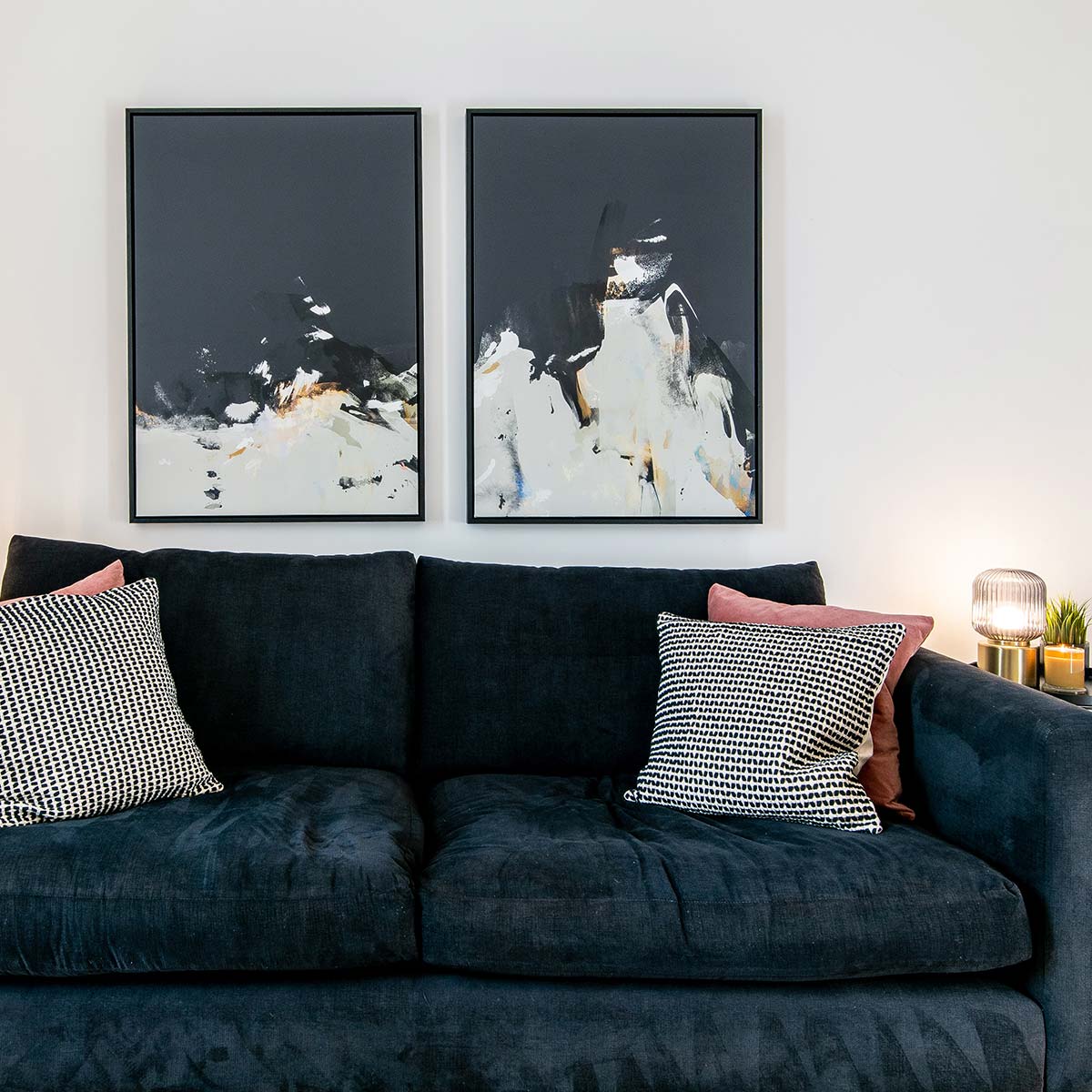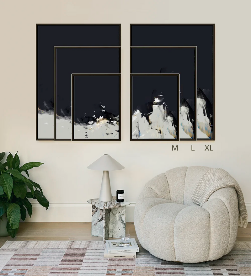 Framed Canvas Sets: Born to hang together. For large walls, open-plan spaces, or connecting different parts of a room. Sets are an easy way to create balance and style without the guesswork.